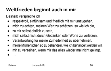 Die Karte „Weltfrieden beginnt in jedem Einzelnen“